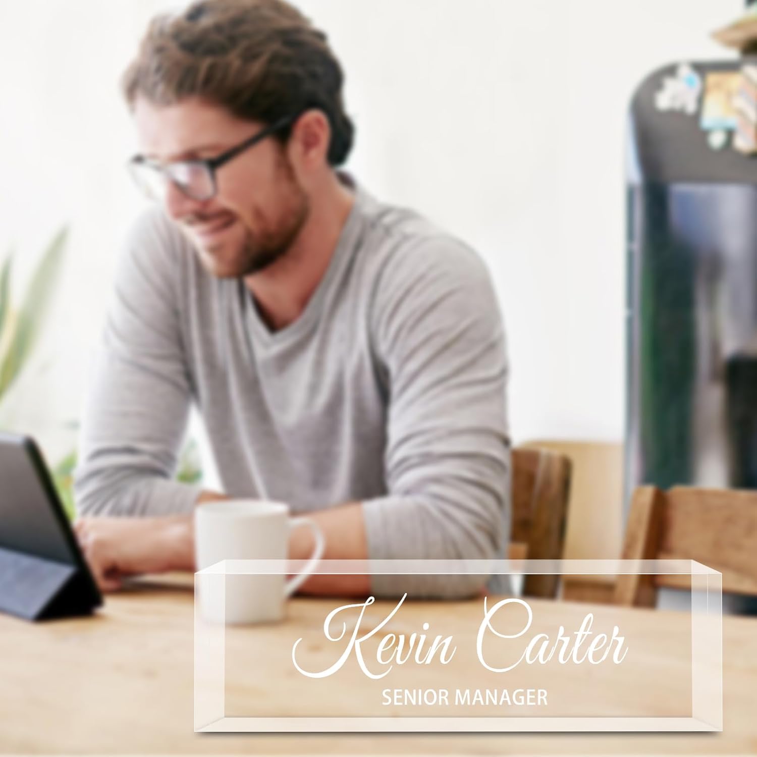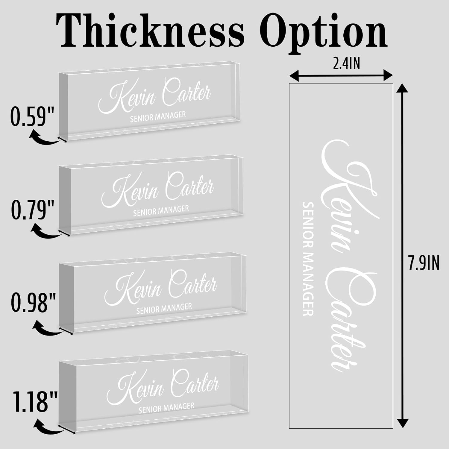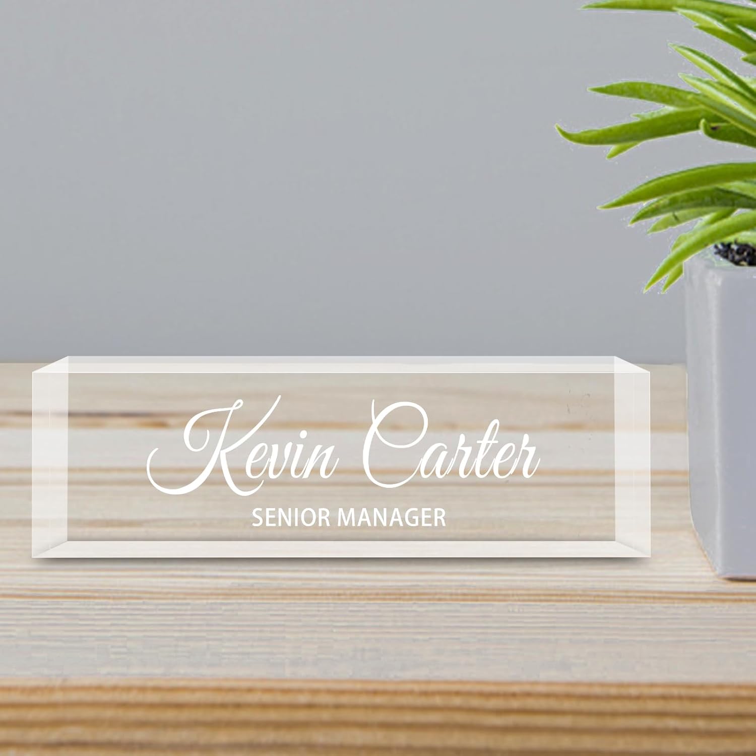 - 【Personalized Appreciation Gifts】Whether it's a holiday, birthday, or work anniversary, there's no better way to show your appreciation than by DIY-ing a unique name plate for your coworkers. And what better option than our premium acrylic glass block name plate? It's guaranteed to leave a lasting impression and let your colleagues know just how much you value them.