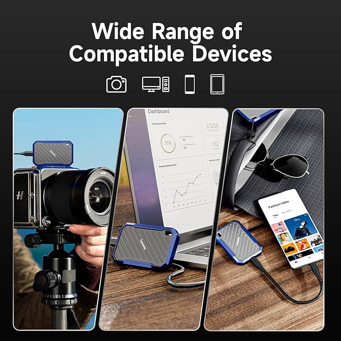 - Wide Compatibility: Equipped with a USB 3.2 Gen2*2 interface, the External Solid State Drive offers versatile storage solutions for laptops, iPhones, PS5, and desktops, ensuring reliable performance across various devices