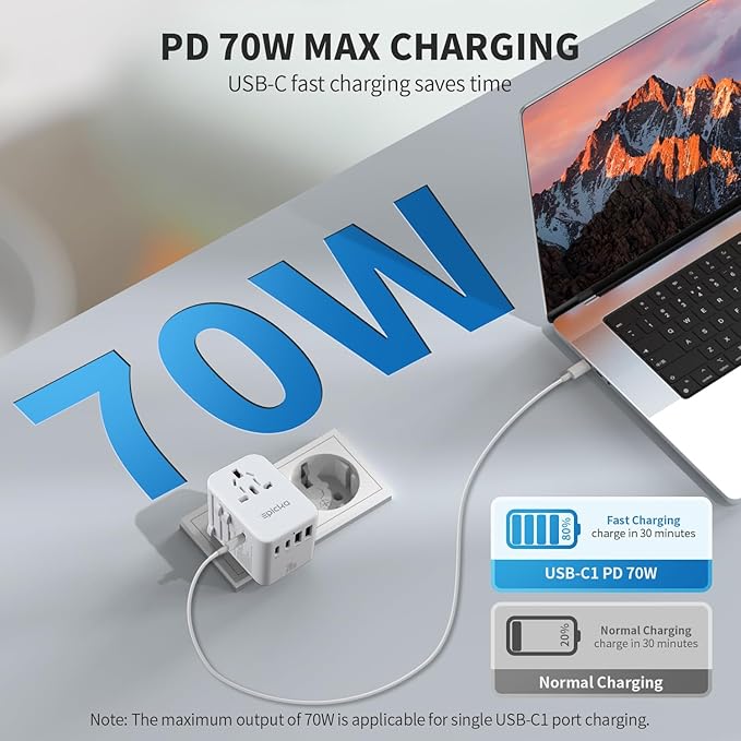 - 6 IN 1 WITH 70W FAST CHARGING - Charge multiple USB devices simultaneously at high speed through 3 USB-C port (3A) and 2 USB-A ports (2.4A).The USB-C1 port supports PD3.0 and offer up to 70W fast charging. Ideal for tablet, USB powered laptop, smartphones, smart watch and fitness tracker, tablet, power bank, camera, handheld game console, headsets, and everything else that is charged through a USB port.