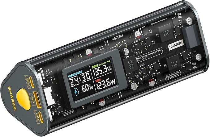 SHARGEEK 170 Power Bank, 140W PD3.1 Portable Charger 24,000mAh/ 86.4Wh High Capacity with Smart Display, 170W Total Output Battery Pack for Laptop MacBook Pro iPhone 17/16/15/14 Series