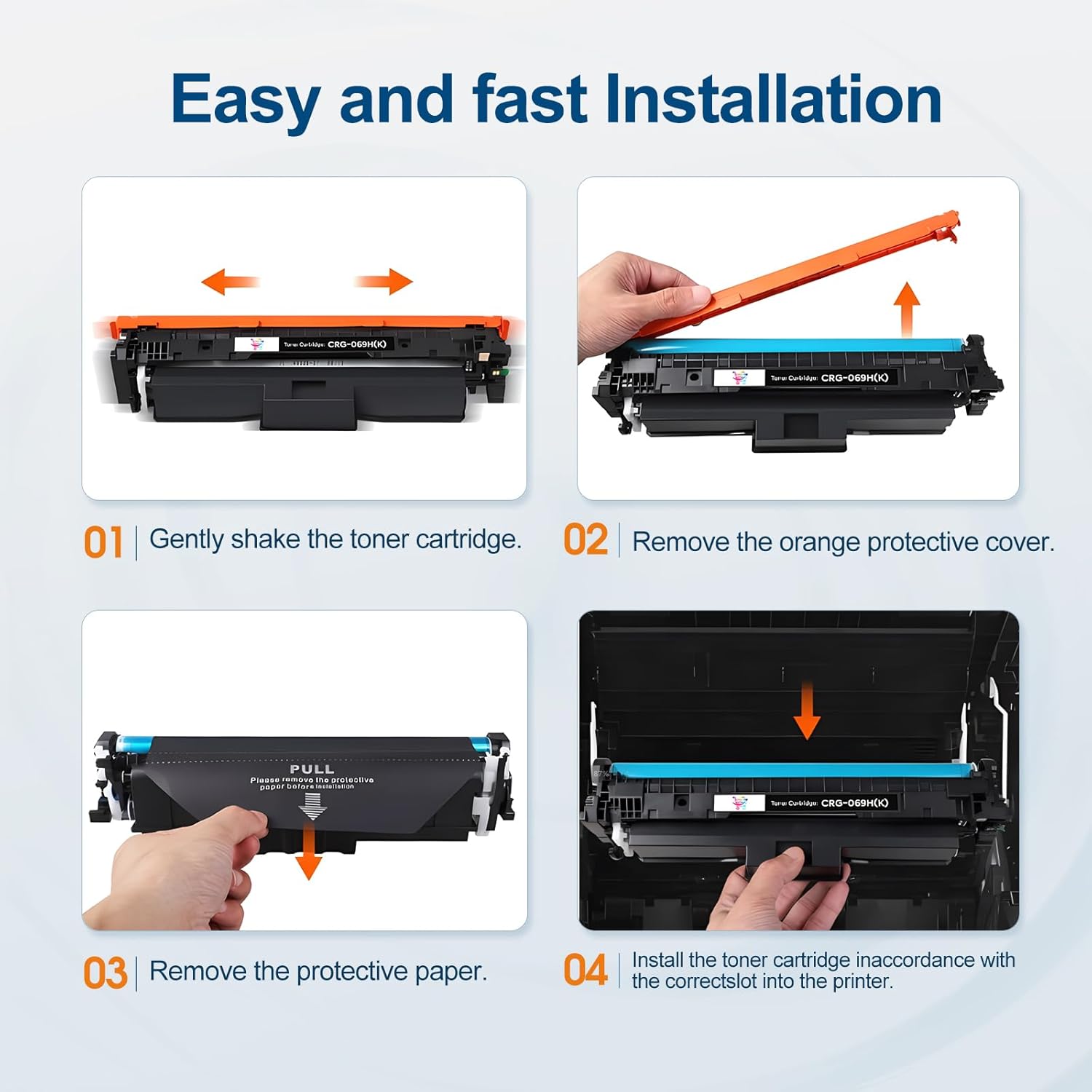 - Package Contents: 1 x 069H 069 Black Toner, 1 x 069H 069 Cyan Toner, 1 x 069H 069 Yellow Toner, 1 x 069H 069 Magenta Toner, 4 Pack Compatible for Canon 069H 069 toner cartridge set