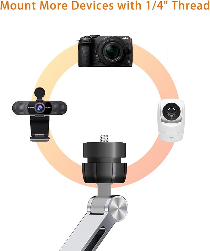 - 【WIDE COMPATIBILITY】This iPad mount supports 4.7"-15.6" devices, including iPad Pro/Air/Mini, Samsung Galaxy Tab S9/S9+ Plus/S9 FE/S9, Kindle Fire HD 10/8, Surface Pro 9/8/7, portable monitors, and any Small Camera,Webcam,Lights with a 1/4" threaded mount.