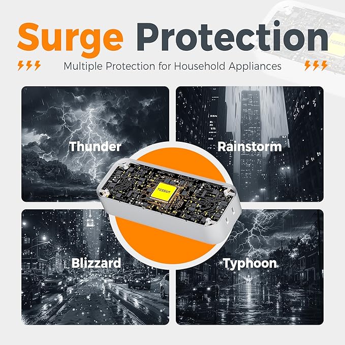 - Surge Protector Outlet: The power of outlet extender ranges 1875W max, wall outlet surge protector protect your expensive computers, hairdryers, shavers, and other devices from surges and spikes disturbances, provide a safe and reliable charging environment