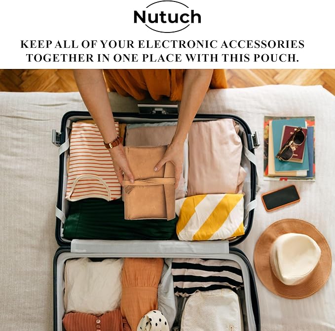 - Nutuch Leather Cable Organizer protects all your mini items, data cables, cords, USB, chargers, headphone, phone, mobile, power bank, passport, bank notes, cards and other electronic gadgets.