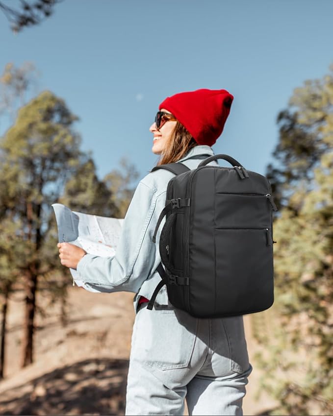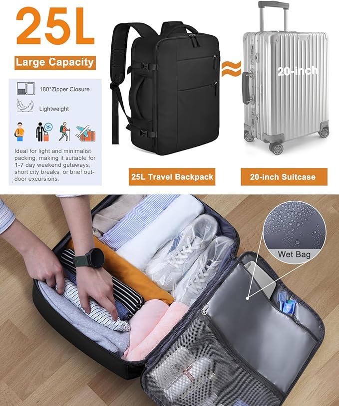 - Comfortable Carry On Backpack:Featuring a breathable mesh back panel and padded shoulder straps designed to effectively alleviate pressure on your shoulders and neck. 13.5*7.5*18.5 inch comply with the majority of airline regulations for carry on bags, ensuring hassle-free travel