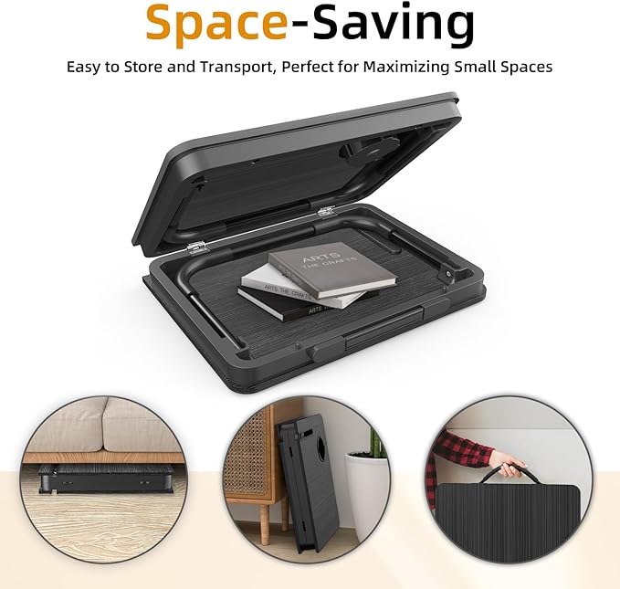 - EASY TO STORE AND PORTABLE: With its lightweight design, this foldable laptop desk can be easily carried from room to room or taken on outdoor trips. After use, fold it up and store it next to the sofa or under the bed without taking up much space.