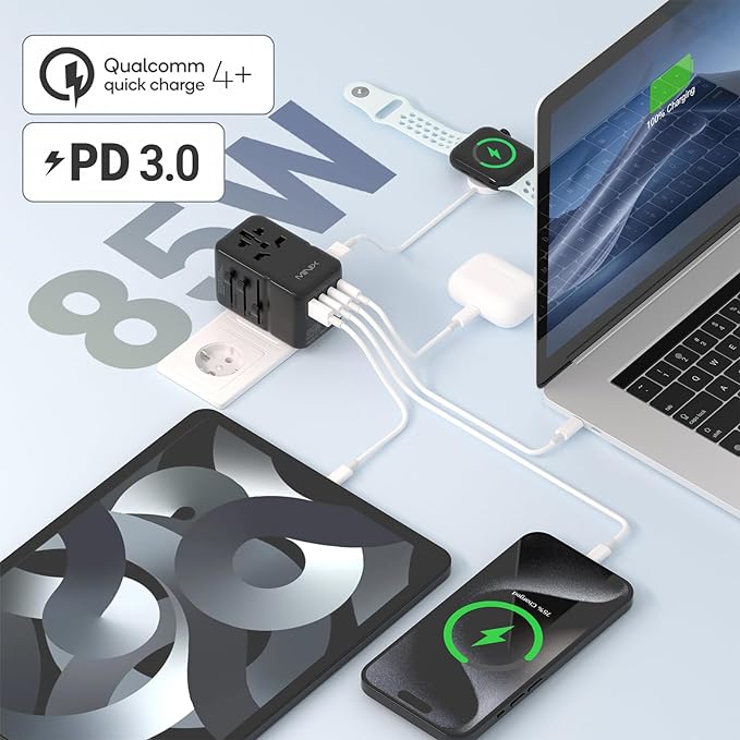 - 【85W GaN III Fast Charger】MINIX’s 85W travel charger built-in 3USB-C (PD 3.0), 2USB-A (QC 4+),1 AC Port. 5-Ports GaN III Wall Charger delivers ultra-fast charging speeds.