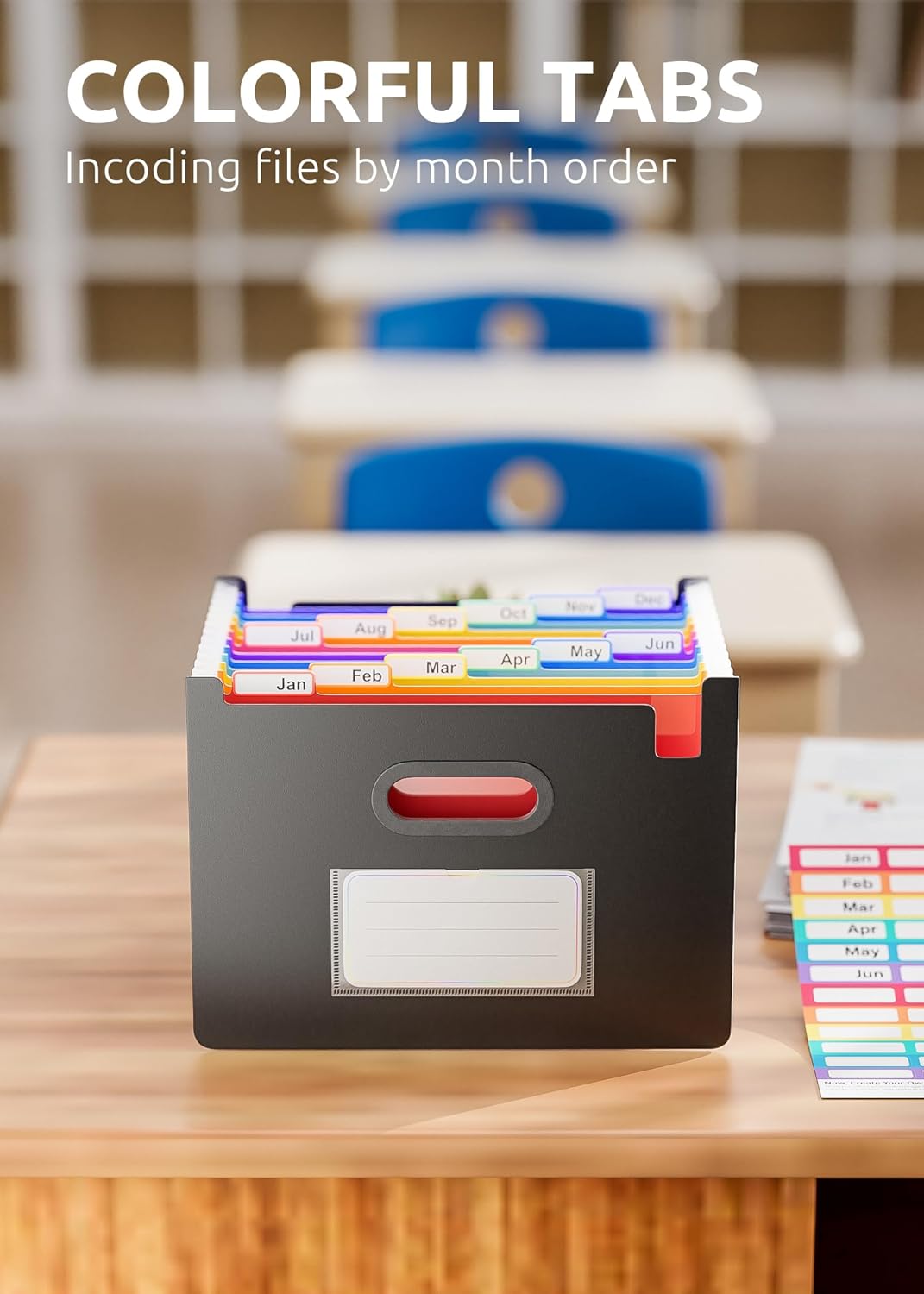 - EASY ACCESS - No cover and no hamper, open top and Monthly colorful Tabs, coding files in alphabetical order