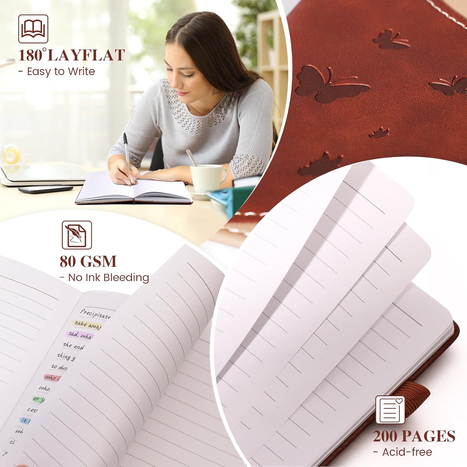 - 【180° Lay Flat Design】: Classic sturdy covers with Acid-free paper can be layed flat to 180 degree. After relaxing the binding a bit, it did lay perfectly flat, It is a comfortable writing experience.