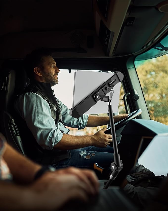 - 【Heavy-Duty and Stable】Our anti-theft tablet stand is a heavy-duty design with a metal base for extreme durability and stability, firmly attached to most passenger seat rail bolts.. Steel keeps the device firmly in place with low vibration while allowing it to be quickly and easily repositioned. This ultra-long metal arm makes it very suitable for use in large vehicles such as heavy duty truck, pickup truck, work truck, semi truck.