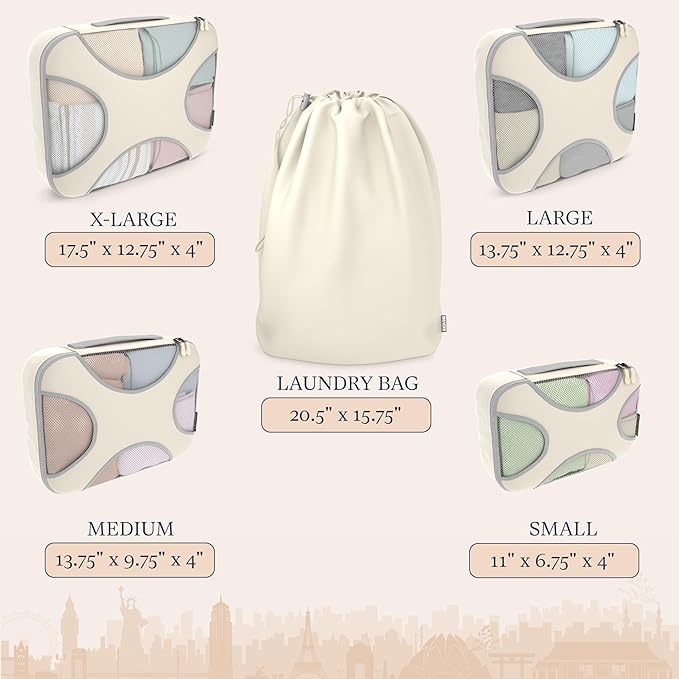 Shacke Premium 5 Packing Cubes Set - Lightweight Mesh Travel Luggage Organizers with Laundry Bag, 5-Piece Suitcase Storage System (Sand)