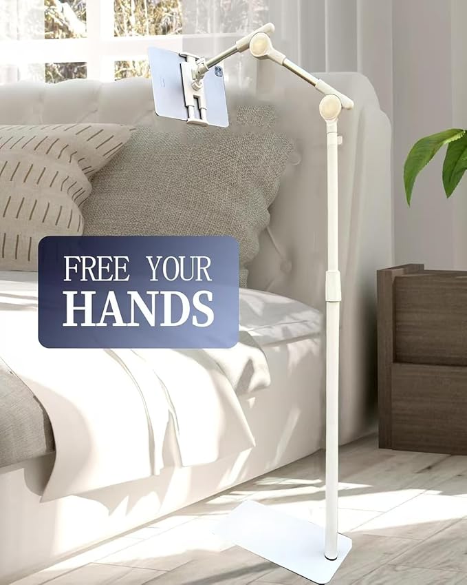 - 【Multi-Functional Tablet Stand】This is a stand designed specifically for floor use. You can easily place the stand beside the bed or sofa, watch TV programs, and engage in video calls with family. Additionally, you can use it in your office,living room, kitchen, bedroom,etc.