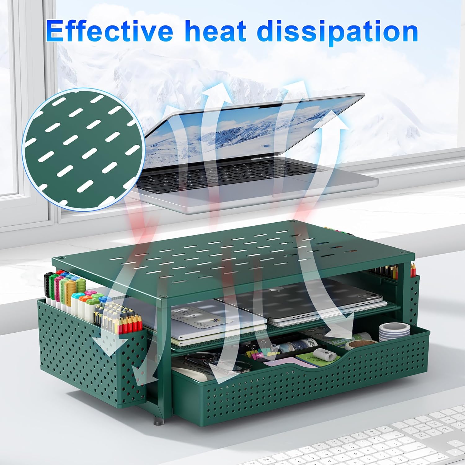 - 【Unique Desk Decor】: The monitor stand has a classic green coating, adding elegance and modernity to your office while being sturdy and practical. allowing you to work in a cozy and tidy environment with greater comfort and efficiency.
