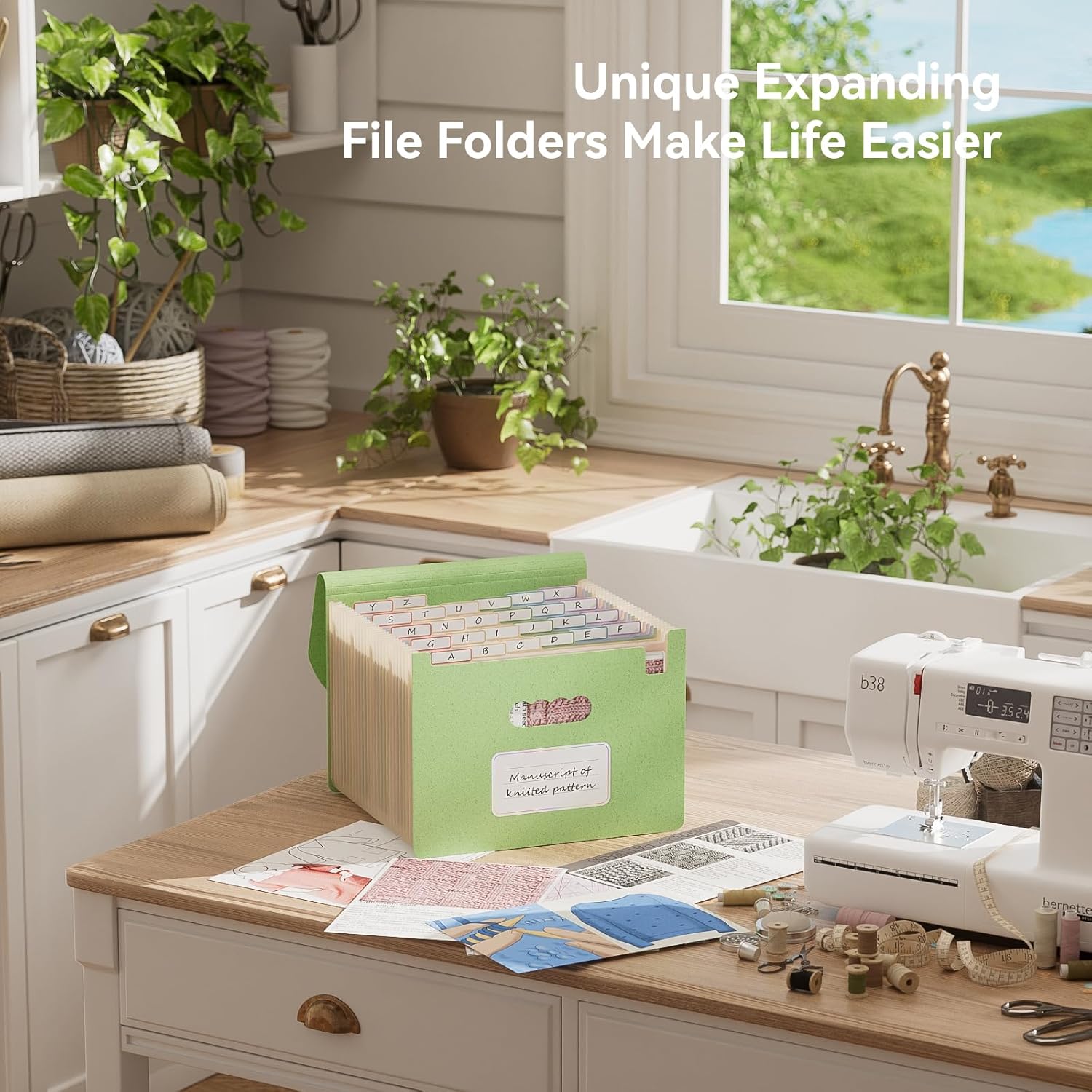 Accordion File Organizer, 26 Pockets Wheat Straw Expanding File Folder, Monthly Bill Receipt Organizer, A-Z Tabs, 100% BPA Free, Return to Nature, Healthy Living, Letter/A4 Size - Mint Green