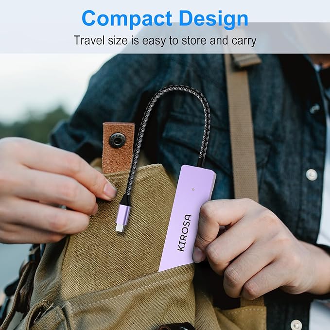 - 100W PD & 23cm Cable: The macbook adapter supports a 100W USB C pass-through charging (100W power in and 85W power out), ideal for continuously charging MacBook Pro/Air and other USB C devices. KIROSA usbc hub also comes with a braided cable up to 23cm for rich connection. Plug and play, no software or drivers required.