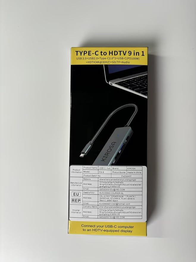 - 100W PD & 23cm Cable: The macbook adapter supports a 100W USB C pass-through charging (100W power in and 85W power out), ideal for continuously charging MacBook Pro/Air and other USB C devices. KIROSA usbc hub also comes with a braided cable up to 23cm for rich connection. Plug and play, no software or drivers required.