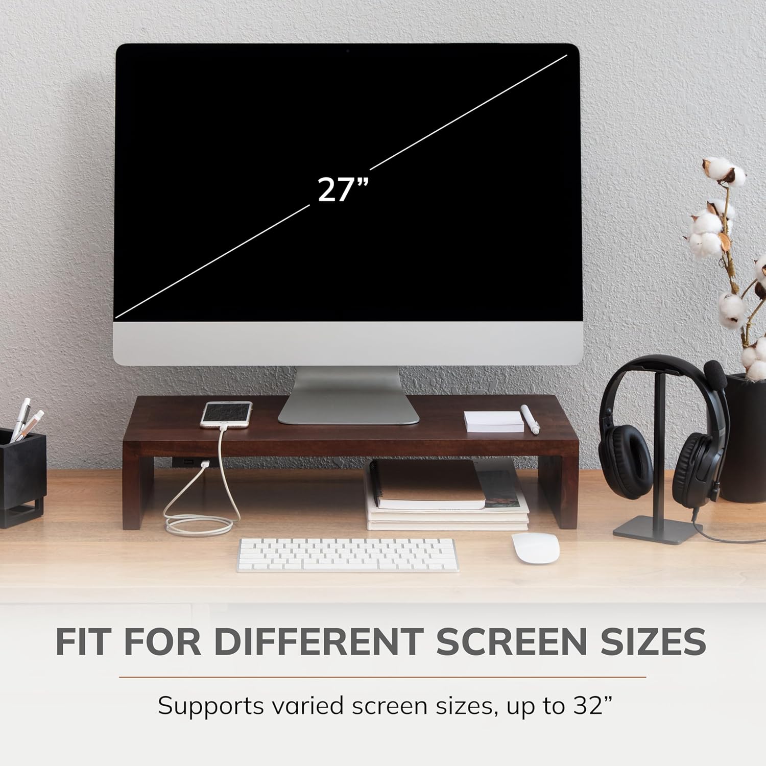 Anji Mountain Wooden Monitor Stand - Elegant Monitor Riser, Perfect Monitor Stand for Desk Organization, Durable Wood Construction monitor stands, Enhances Ergonomics and Workspace Efficiency,Walnut