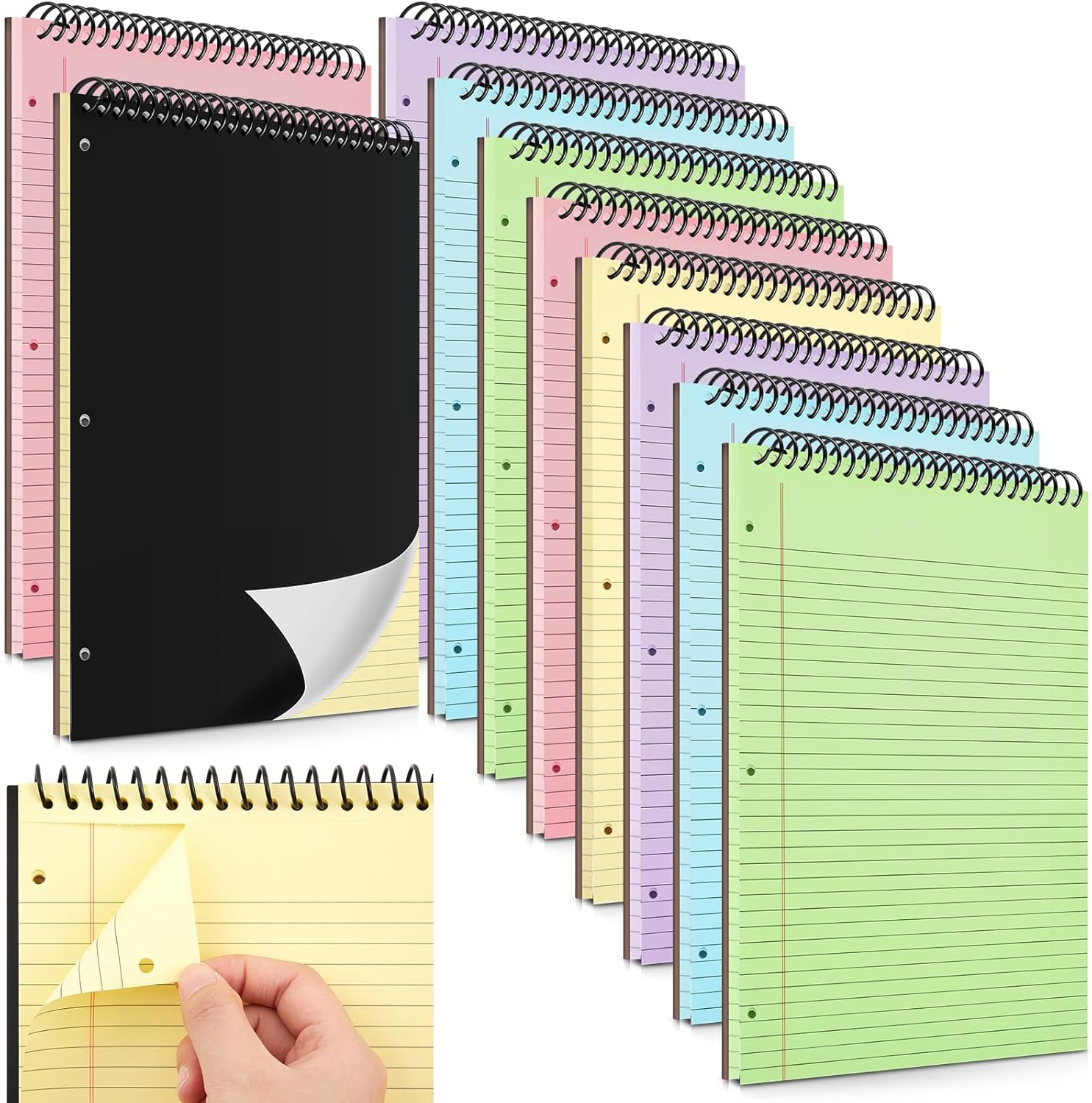 10 Packs 8.5" x 11" Top Spiral Notebook with 3 Hole Punched Legal Pads College Ruled Notepad 50 Sheets Hard Cardboard Paper Wirebound Notepad for Office School Business (Multicolor)