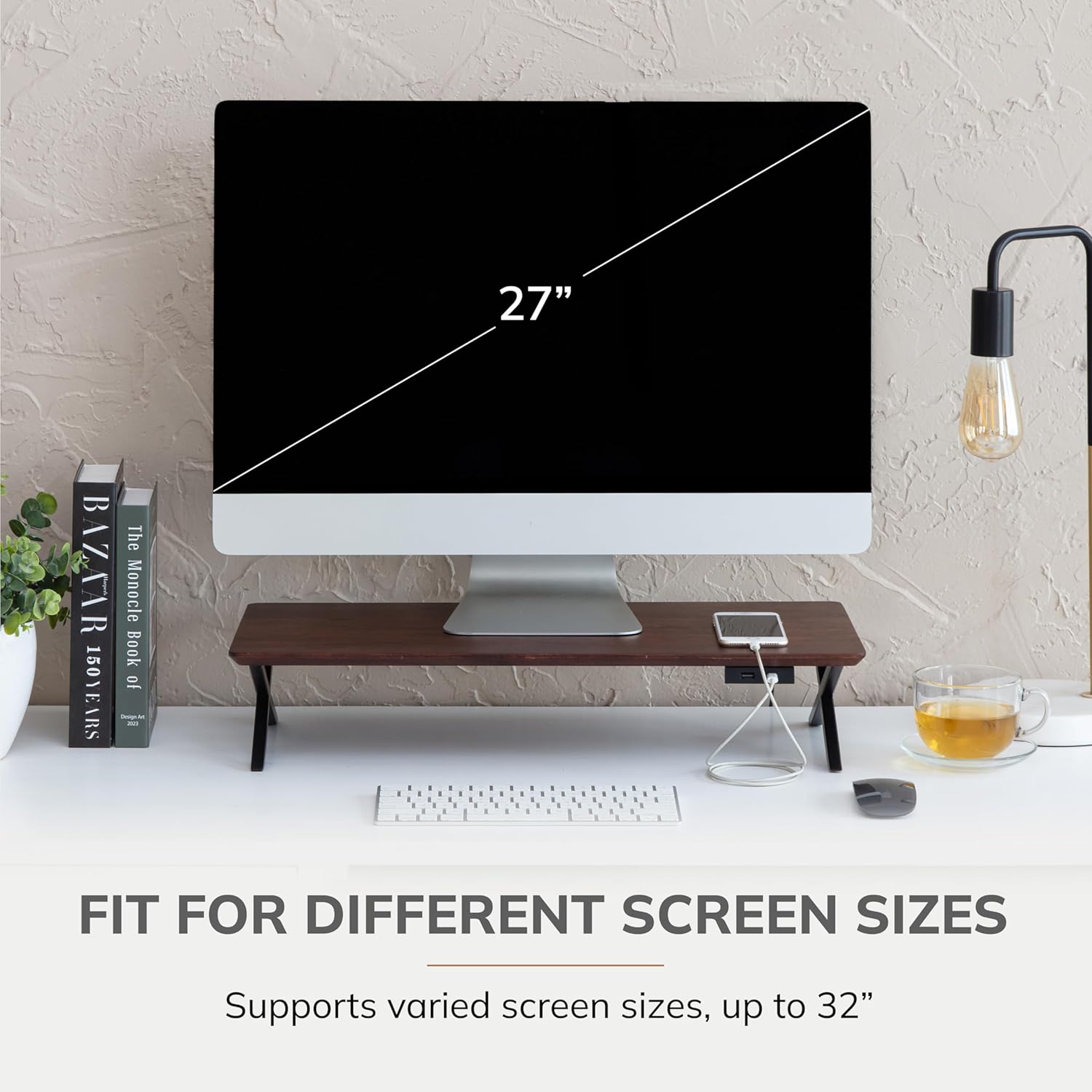 - Ergonomic Computer Riser: Prioritize comfort with this thoughtfully designed computer riser. As one of the best computer risers for desk monitors, the monitor stand wood construction offers an ideal viewing angle for maximum productivity.