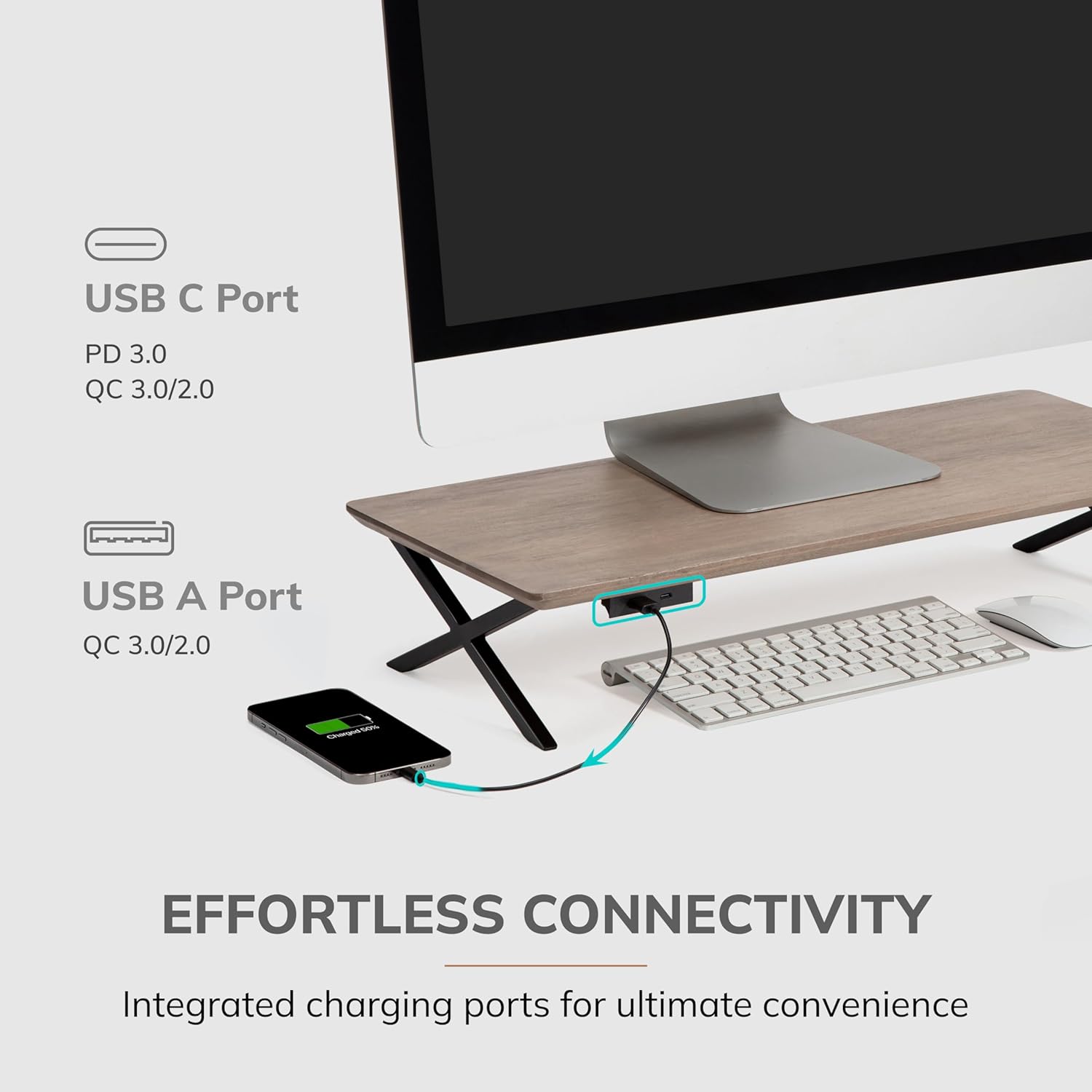 - Ergonomic Computer Riser: Prioritize comfort with this thoughtfully designed computer riser. As one of the best computer risers for desk monitors, the monitor stand wood construction offers an ideal viewing angle for maximum productivity.