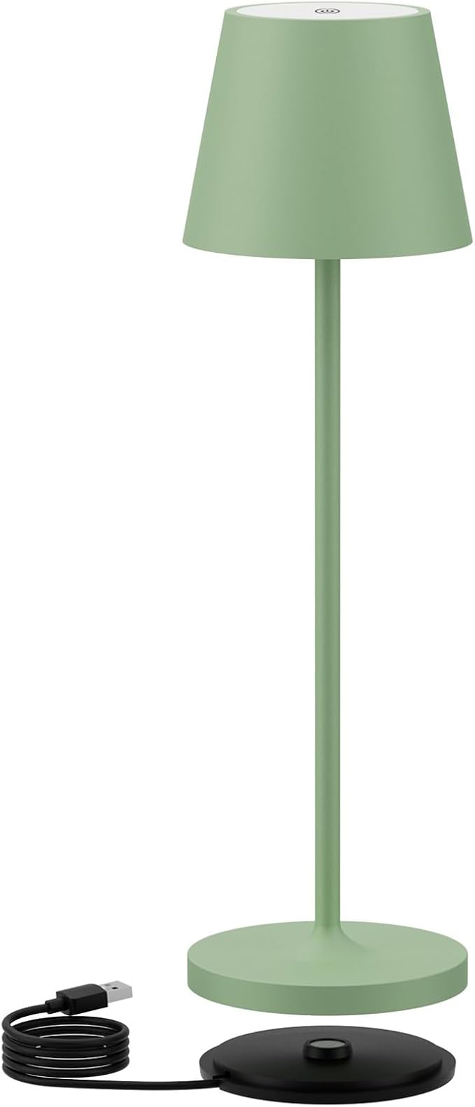 Ralbay IP54 Aluminum Cordless Rechargeable Table Lamp LED Modern Battery Operated 4800mAh Waterproof Portable Stepless Dimmable Desk Lamp for Restaurant/Bedroom/Camping/Outdoor (Green)