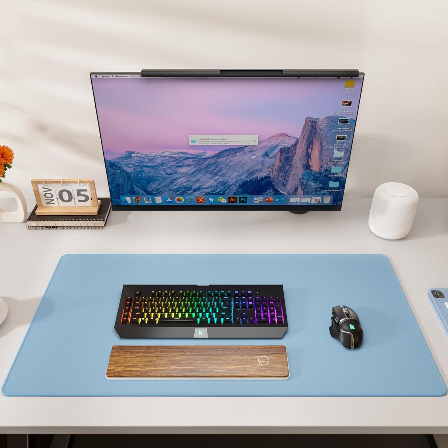 KTRIO Large Gaming Mouse Pad with Stitched Edges, Extended Mousepad with Superior Micro-Weave Cloth, Non-Slip Base, Water Resist Keyboard Pad for Gamer, Office & Home, 31.5x15.7in, Ice Blue