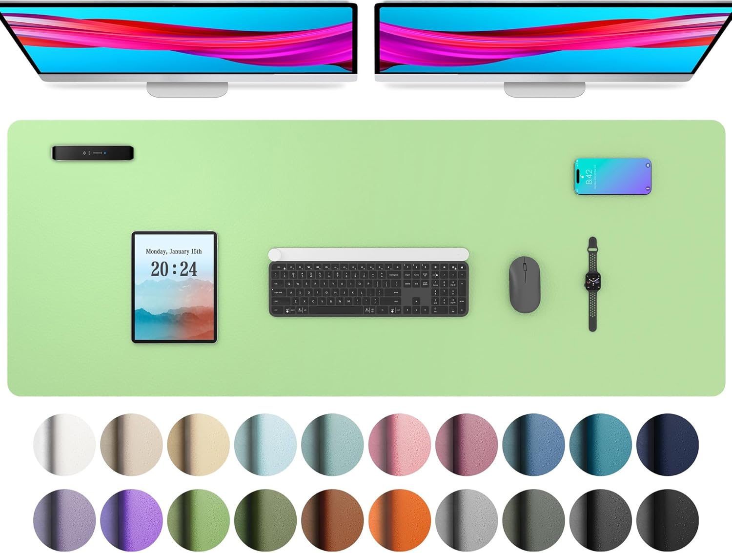 Aothia Leather Desk Pad Protector, Office Desk Mat, Large Mouse Pad, Non-Slip PU Leather Desk Blotter, Laptop Desk Pad, Waterproof Desk Writing Pad for Office and Home (48"x17", Foam Green)