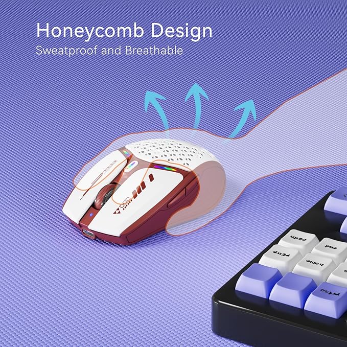 - INNOVATED HONEYCOMB & MAGNETIC COVER DESIGNοΌThe honeycomb & magnetic cover design of the back shell of the mouse not only has a beautiful and unique mecha-style appearance but also has a very practical function with breathable heat dissipation, and the USB receiver is stored in the mouse and just needs to remove the magnetic cover and take out. It's convenient, and don't worry about losing your mini USB receiver.