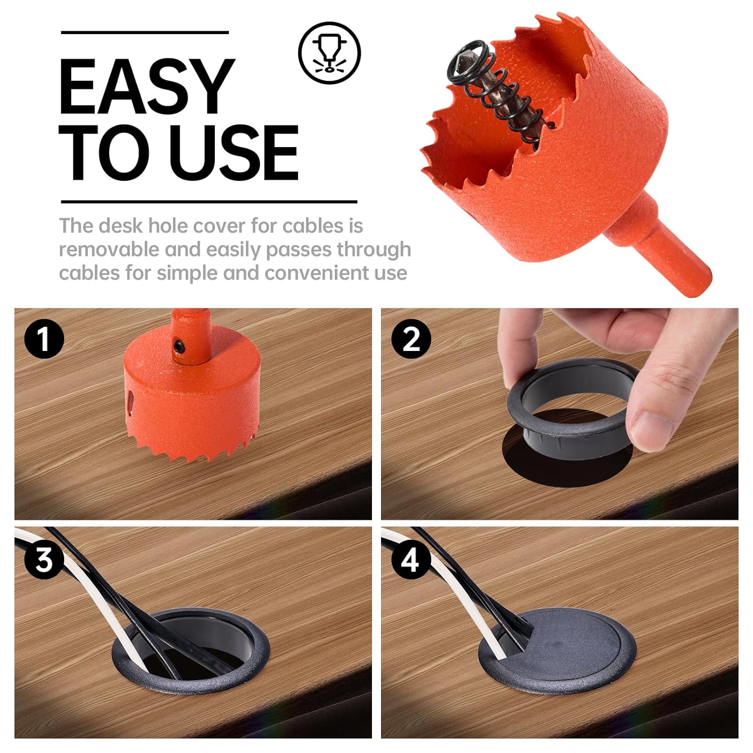 - 【Kit includes】12 Pcs black desk grommet 2 inch/50 mm comes. With 2 inch/50 mm Hole Saw.