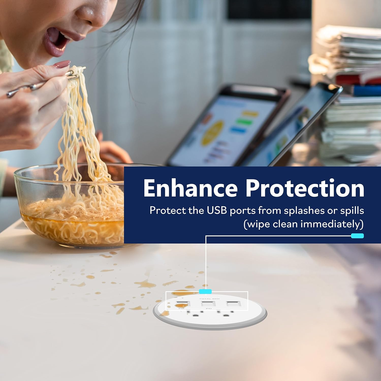 - Safe and Reliable - LIDER desk grommets are designed with safety in mind, with Tamper-Resistant outlets. Specifications include: Max wattage: 1500W; Single USB Type-C: 5V/9V/12V/15V/20V, 3A(60W); Dual USB Type-C: 20V/1.5A, 15V/2A, 12V/2.5A, 9V/3A, 5V/3A(30W+30W); USB Type-A: 5V/1.2A; USB Type-C + USB Type-A: 60W+5V/1.2A; USB Type-C1 + USB C2 + USB Type-A: 30W+30W+5V/1.2A; AC cord type: 6.5ft 16AWG Appliance cord, NEMA 5-15P. Plus, enjoy a 1-year warranty for added peace of mind.