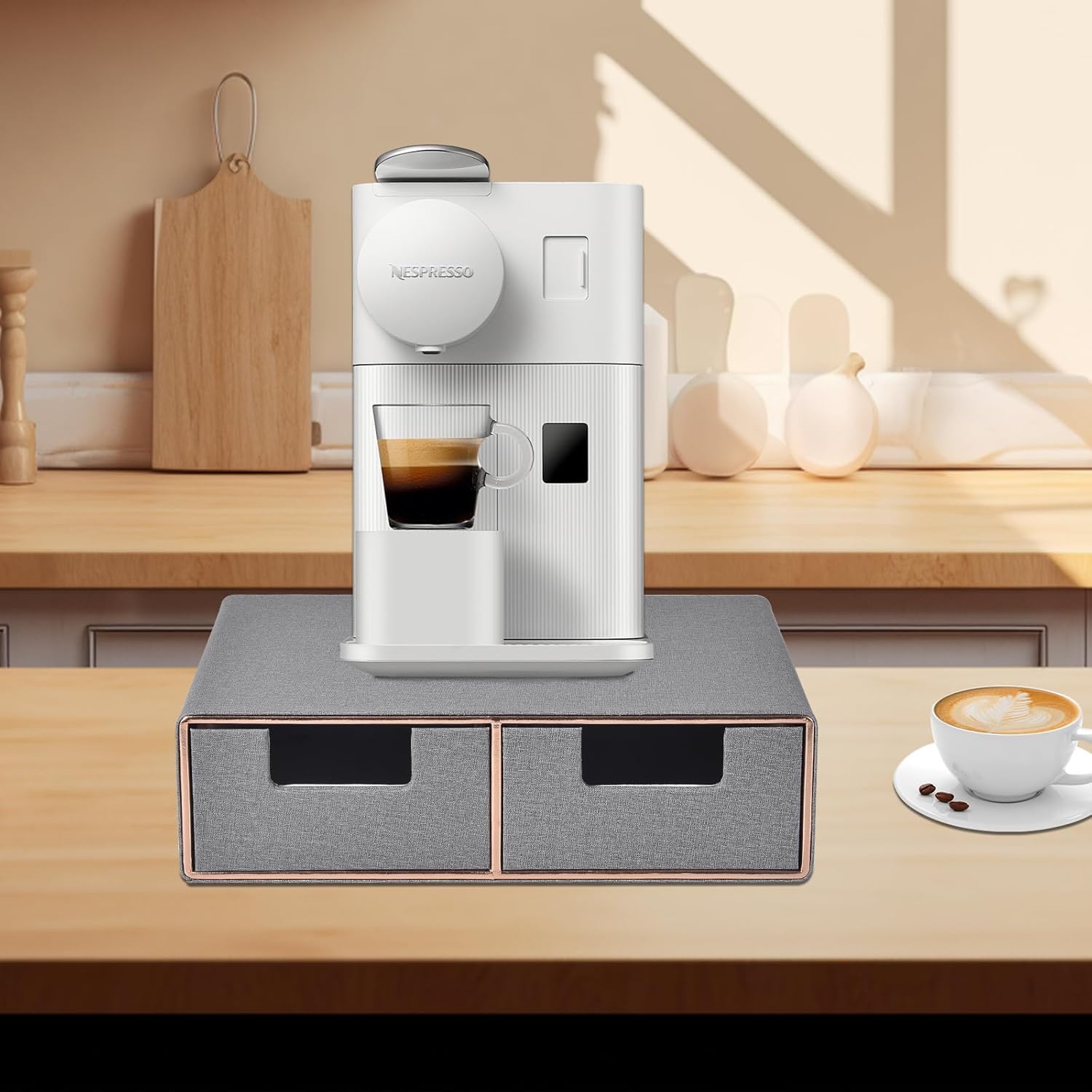 - Coffee Brewer K Cup/Coffee Pod Holder:Small coffee maker Holder with 2 drawers for small/large pods,K-cups holder,tea potor holder,or as other kitchen accessories machine storage stand shelf.
