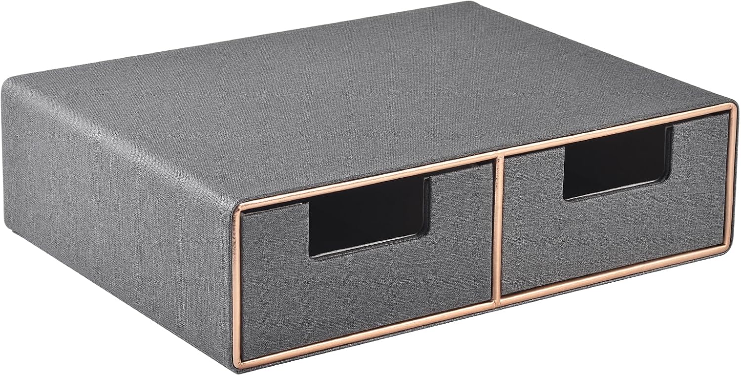 Linen Leather Desk Organizer with Drawers-Mini Desktop Drawer Organizer Stackable-Multifunctional Tabletop Organization Storage Box for Office Supplies Home Vanity Toiletries (Grey, 2-drawers)