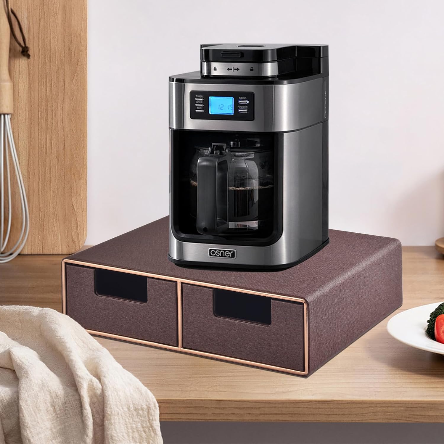 - Coffee Brewer K Cup/Coffee Pod Holder:Small coffee maker Holder with 2 drawers for small/large pods,K-cups holder,tea potor holder,or as other kitchen accessories machine storage stand shelf.