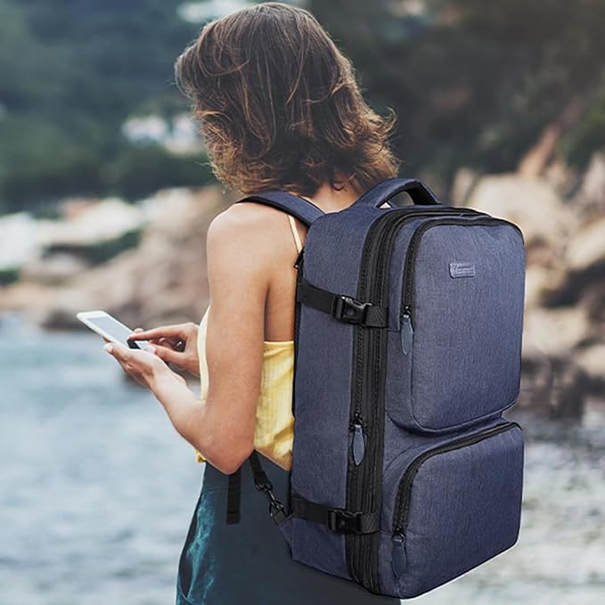 - Spacious & Organized: Pack smarter, not harder! This large suitcase backpack has a large main compartment that expands from 5.5″ to 7.5″ depth, pack 3–5 days of clothing with room to spare. Three front organizer pockets keep your phone, passport and snacks within easy reach, while a concealed anti-theft back pocket secures your wallet and keys. Designed for effortless packing and quick access, this carry on travel backpack turns travel chaos into seamless adventure