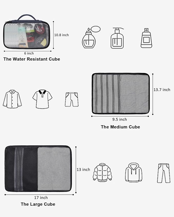 - 3 Extra Packing Cubes: Organizer like a pro – the carry on backpack for airplanes has 3 Packing Cubes of different sizes for you to sort different types of clothing, Large cube for jackets, sweaters, trousers, Medium cube for shirts, shorts, blouses, Small water resistant cube are available for you to put the toiletries you need for travel, make your various travel necessities Neat and Orderly, bring you more convenience during the journey