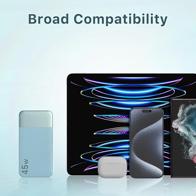 - 【Universally Compatible All Devices】Whether it's a high-power device or one with lower current requirements, our portable battery accommodates them all. Smartphones, tablets, laptops, SteamDeck, wireless earbuds, smartwatches, drones - it works with them all