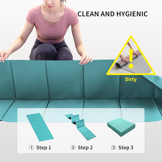 - 【Layered Inside and Outside to Keep Out Dirt】The part of the mat that touches the floor when folded for storage does not come into contact with the front of the mat, isolating it from dirt. When traditional mats are rolled up for storage, the bottom of the mat will directly cover the front of the mat, bringing dirt from the floor to the surface of the mat.