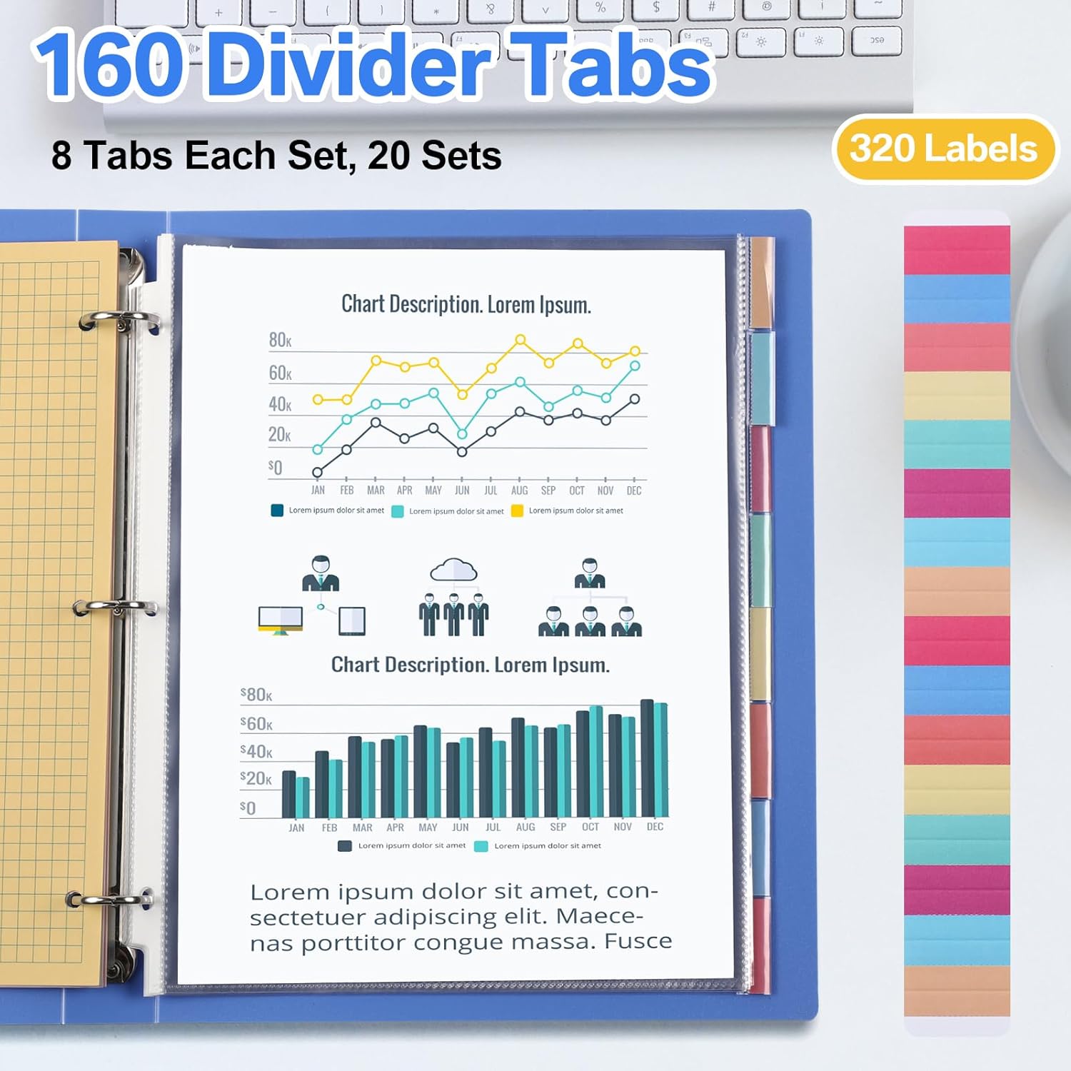 - 8 Colored Tabs: each set of clear plastic dividers for 3 ring binder comes with 8 tabs in different colors, so you can easily organize, categorize and locate different sections within your documents easily; A transparent paper protector allows you to view documents clearly, while colored tabs make it easy and quick to find what you need