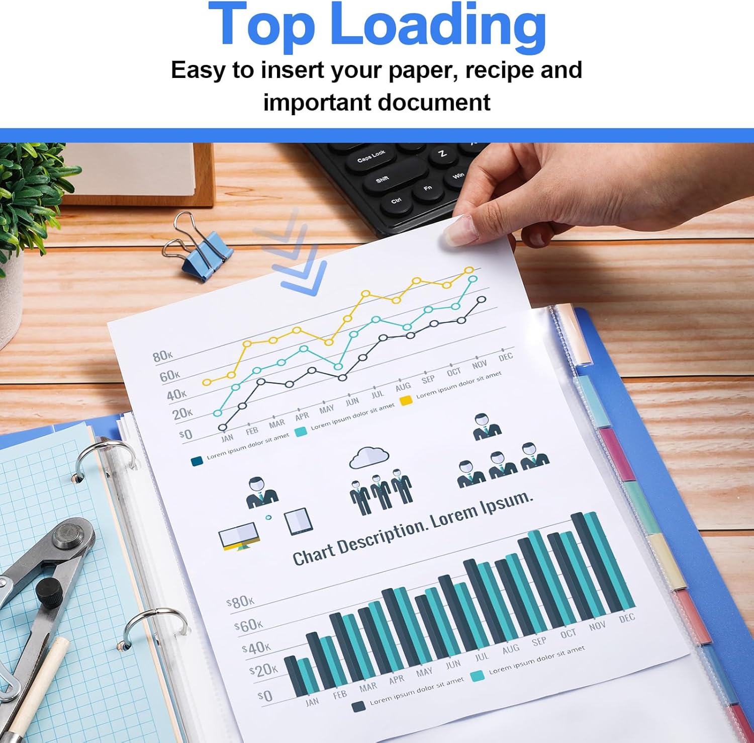- Package List: the package comes with 6 sets of 48 pcs of sheet protectors for 3 ring binder, each set contains 8 pcs of sheet protectors with 8 different colors tabs, you can easily organize files and quickly find what you need with these 3 ring binder dividers, sufficient quantity offers you ample organization options for your documents
