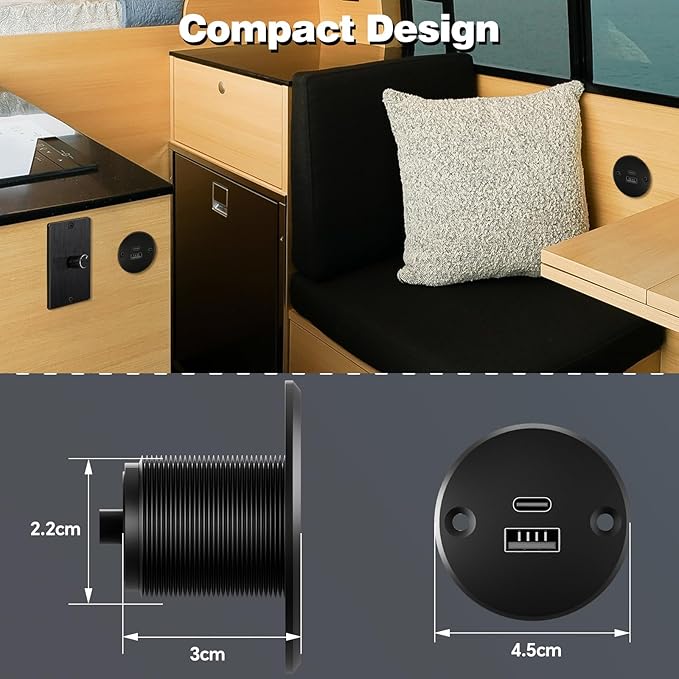 - Efficient Charging: Elevate your RV experience with Acegoo's 12V USB Outlet, boasting PD3.0 Type-C & QC 3.0 USB-A ports. Each port unleashes 24W power, charging devices up to 4x faster. Ideal for tablets, & gadgets