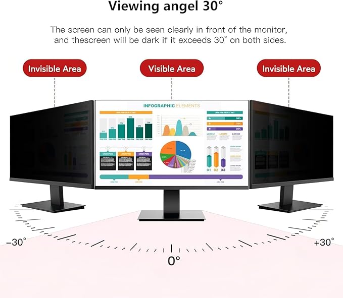 - 【Superior Privacy 】- the content directly in front of the screen (within +-30° angle) is visible. Premium Computer privacy screen filter keeping your important information confidential and protects sensitive information, making it ideal for use in high-traffic areas. It uses revolutionary micro-louver technology. Anti-Scratch Technology.