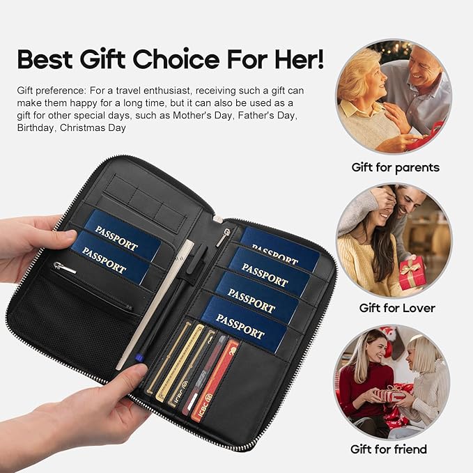 RFID Blocking Family Passport Holder Wallet 6,Premium Leather Travel Document Organizer for Women and Men,Travel Wallet for Credit Card