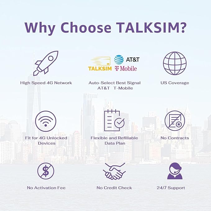 - 【Superior Support】The TALKSIM prepaid SIM card USA provides top-notch ongoing support. If you encounter any queries or problems while using the US SIM card, please do not hesitate to get reach. Our commitment is to deliver exceptional service to you, which also includes the ICCID number.