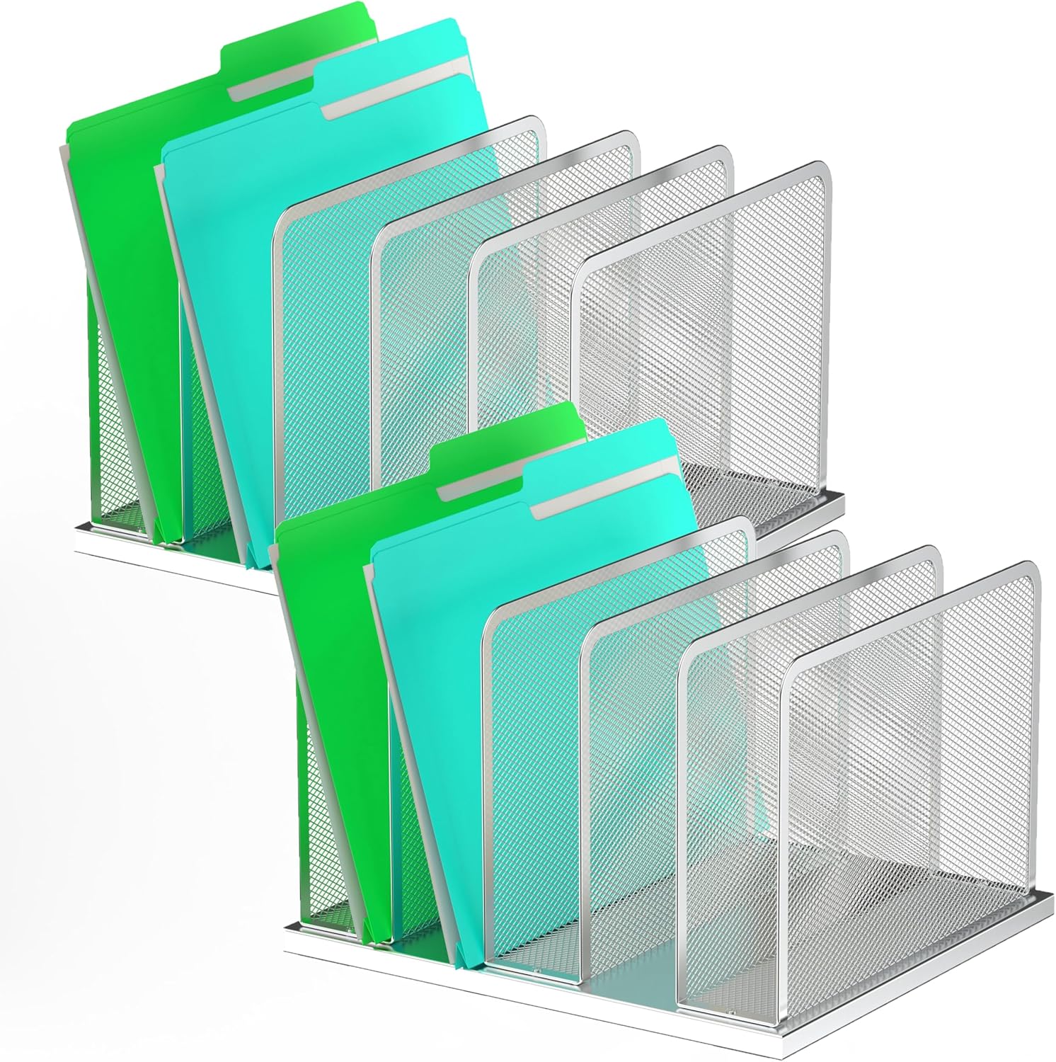 Kuntine.B Desk File Organizer Upright Mesh Desktop Organizer File Sorter Office Organization File Holder for Home, Office & Classroom (Silver, 2 Pack 5-Section)