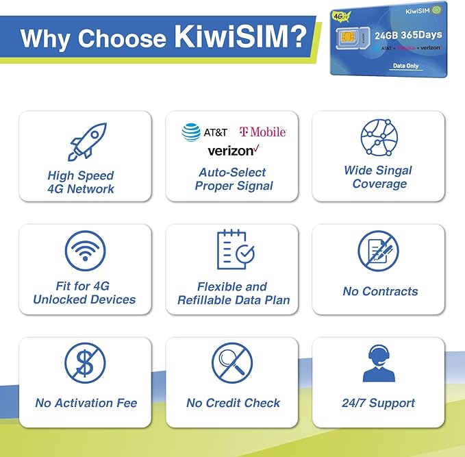 - 【Professional Support Provided】KiwiSIM USA SIM card provides dependable online customer support to address any SIM card related issues that may arise. We assure you that if there are any concerns regarding the quality of our product, we are commited to offering a satisfactory resolution. Your satisfaction is of utmost importance to us. Please feel to reach out to us for assistance at your convenience.