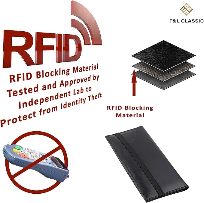 Passport Wallet - Travel Document Holder w/RFID Blocking – Full Grain Leather – Bifold big Wallet with Credit Card Slots for Women and Men,Black,FL-522-10