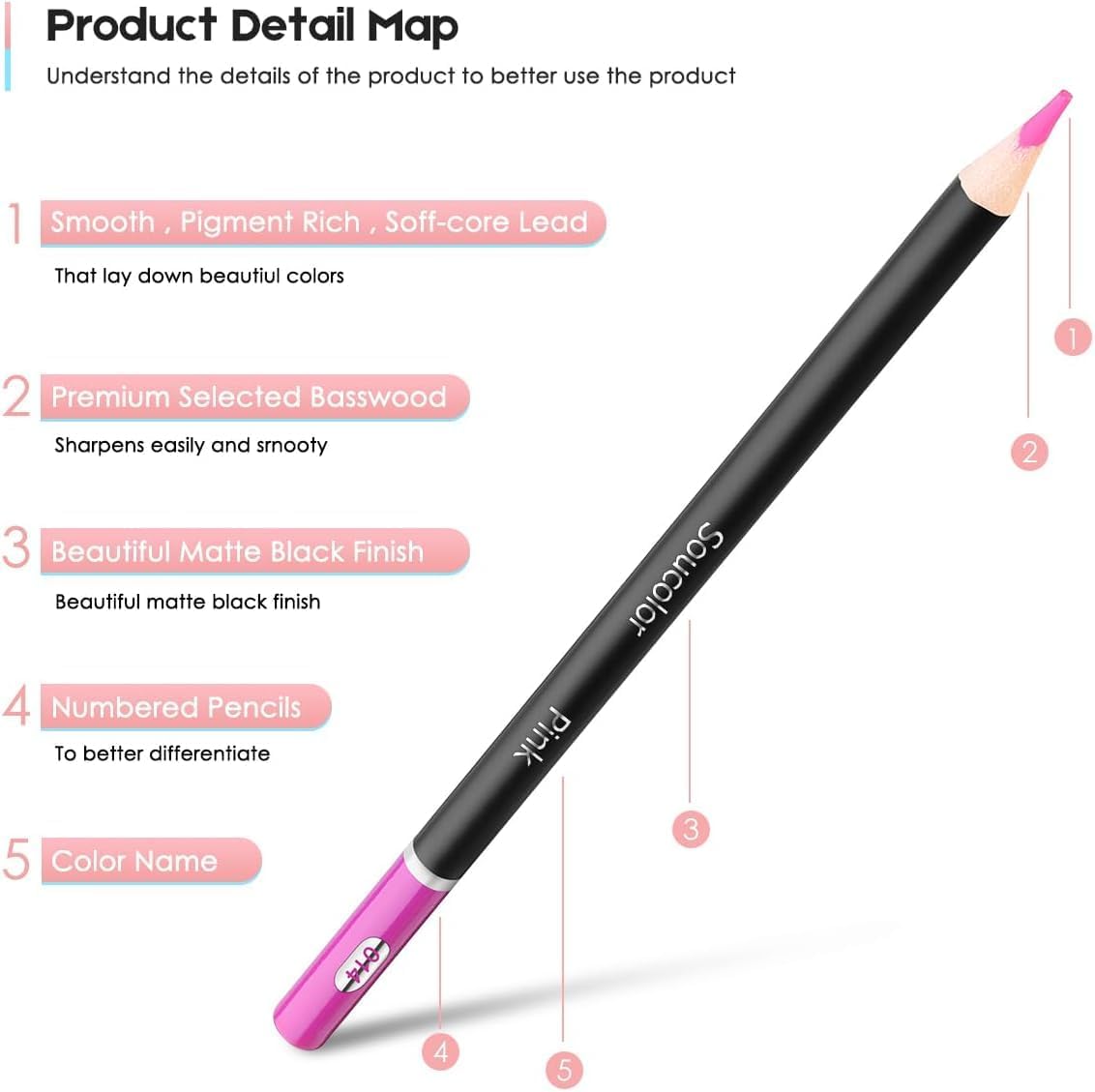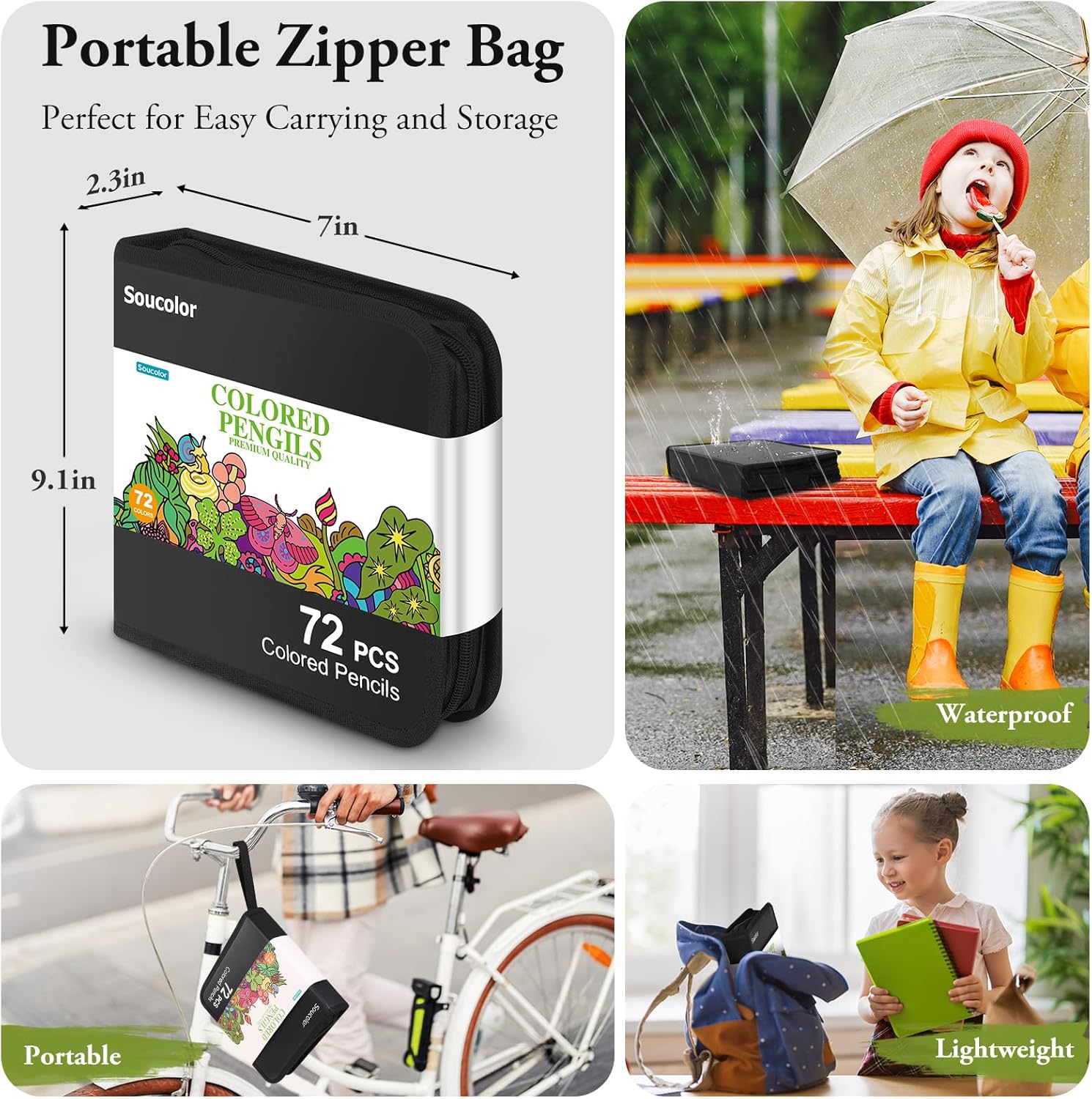 - WHAT YOU GET -- 72 colored pencils + 1 Soucolor Portable Zipper Case. Convenient to storing and keep the color all visible, without any trouble finding the color you are looking for. Perfect for sketchbook, drawing book or adult coloring book.