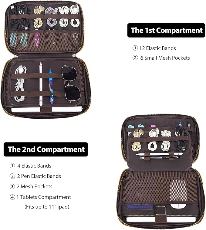 - Perfect For Travel Or Daily: Whether traveling for work or leisure, this electronics organizer travel case is the perfect companion to keep your electronics in order. Its design is perfect for travel use, and its durable leather construction ensures long-lasting performance.