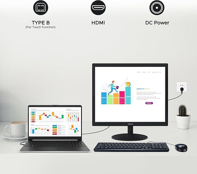 - 【What’s in the box】 17 inch touch screen PC monitor, HDMI cable, TYPE B Touch Signal Cable, DC Power cord, Ajustable Stand and Quick Star Guide (Not supported on all Apple devices)