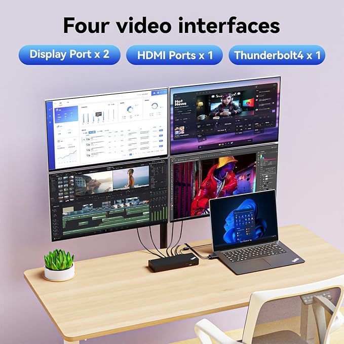 - ✔ Boost Your Efficiency - Broaden your perspective with support 1x 8K 30Hz via HDMI 2.1 or 4x 4K 60Hz monitors, Output Power up to 230W to workstation